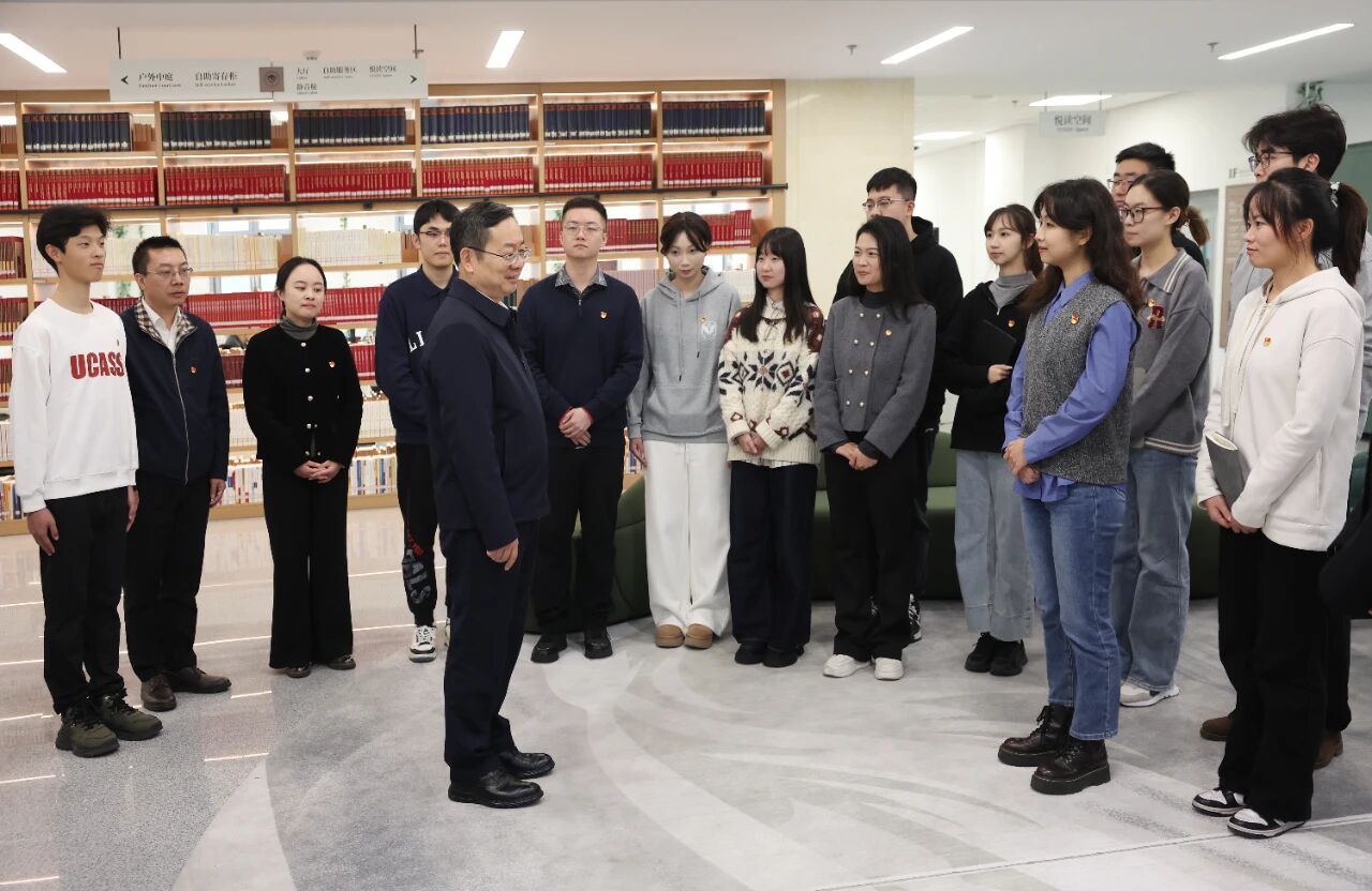 这几日,中国社会科学院大学文学院硕士生黄子瑞的思绪一直沉浸在11月5日午后:那天,银杏叶落了一地,金秋的校园分外美丽,图书馆里书香弥漫。“同学们、老师们,高翔院长、赵芮副院长来看望大家了!”在校党委书记胥锦成的陪同下,学习贯彻党的二十届四中全会精神中央宣讲团成员,中国社会科学院院长、党组书记高翔走进图书馆,将党的二十届四中全会精神宣讲课堂搬到师生中间,和高翔院长一起来的还有中国社会科学院副院长、党组成员赵芮。黄子瑞没想到上午刚刚在线收看高翔院长在院部的宣讲报告,下午就在校园里与他“面对面”,高翔院长对学校的重视、对青年的关爱,令他倍感温暖,回味无穷。